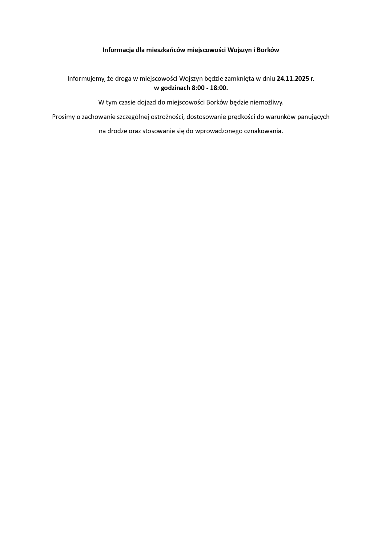 Informacja dla mieszkańców miejscowości Wojszyn i Borków